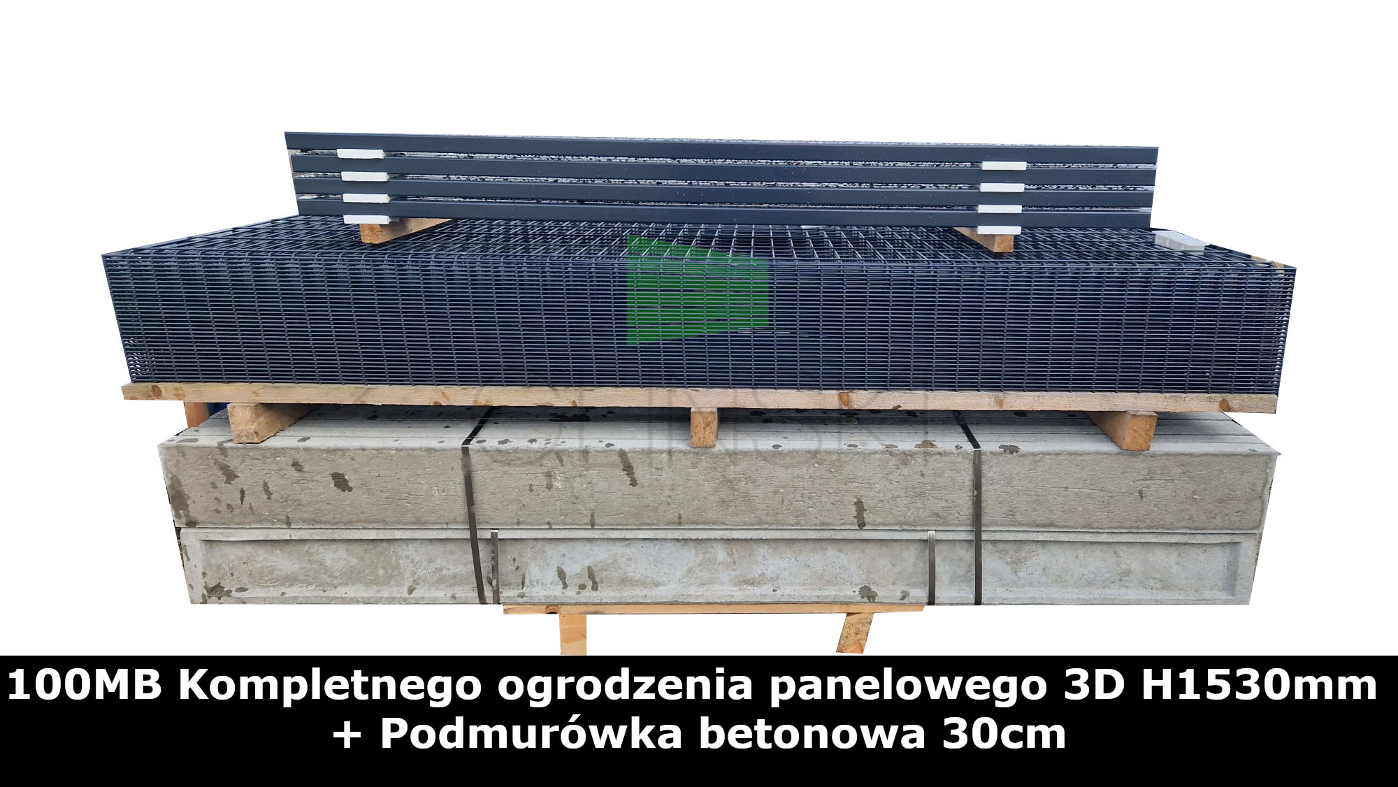 100MB Kompletnego ogrodzenia panelowego 3D H1530mm + Podmurówka betonowa 30cm